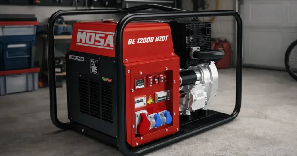 Mosa GE 12000 HZDT on dieselkäyttöinen aggregaatti, joka on tehty tilanteisiin, joissa virtaa tarvitaan luotettavasti työmaalla tai kiinteistön varavoimana. Laite tuottaa 230 ja 400 voltin jännitettä, joten se sopii sekä tavallisille yksivaiheisille kuormille että kolmivaihelaitteille. Maksimiteho on ilmoitettu 12 kVA, ja käytännön mitoituksessa kannattaa huomioida myös 11,5 kVA:n nimellistaso, jos kuormaa on tarkoitus pitää päällä pidempiä jaksoja.